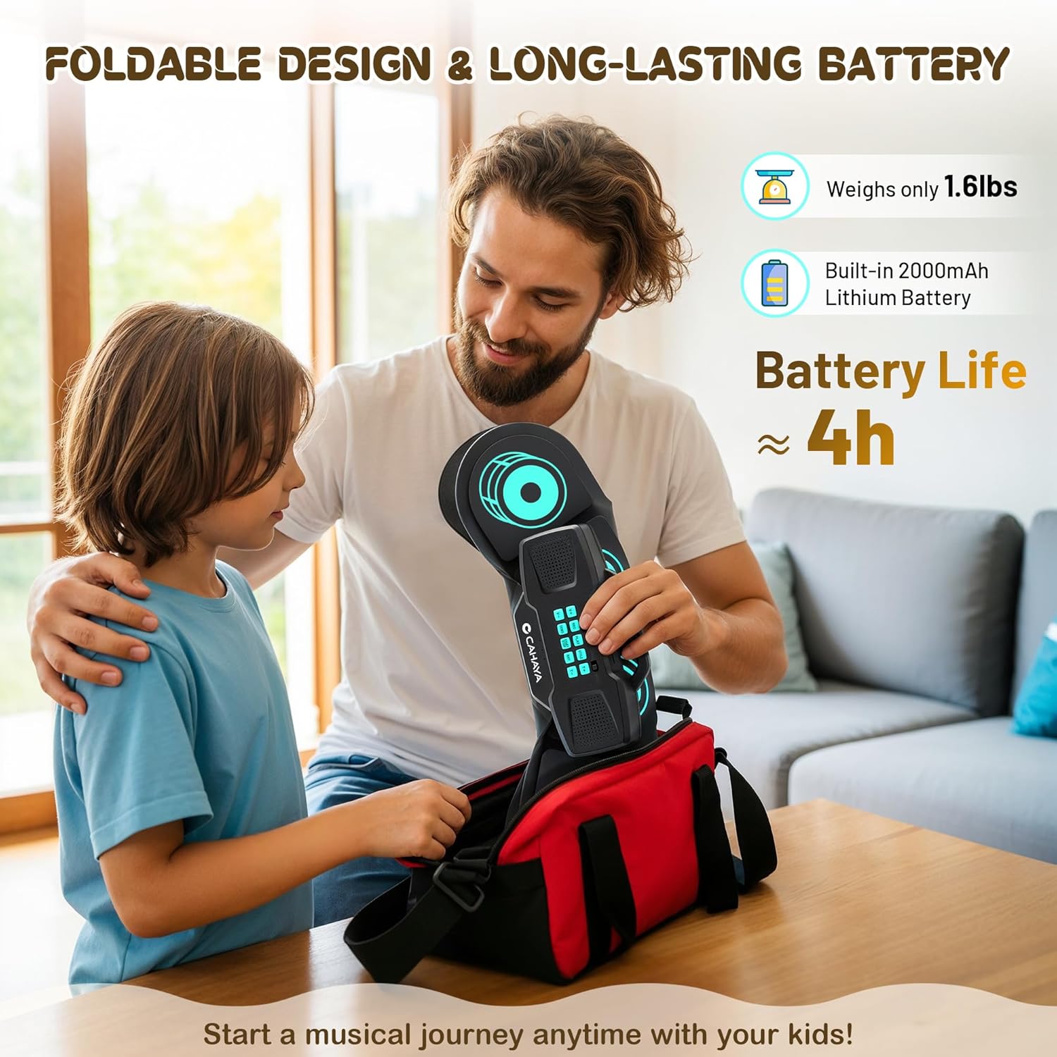 - Long Battery & Portable Design: Up to 10 hours of play with a built-in 2000mAh battery—perfect for outdoor fun. The roll-up design fits in a backpack, while USB power options support continuous use via adapter, computer, or power bank. Play anytime, anywhere!
