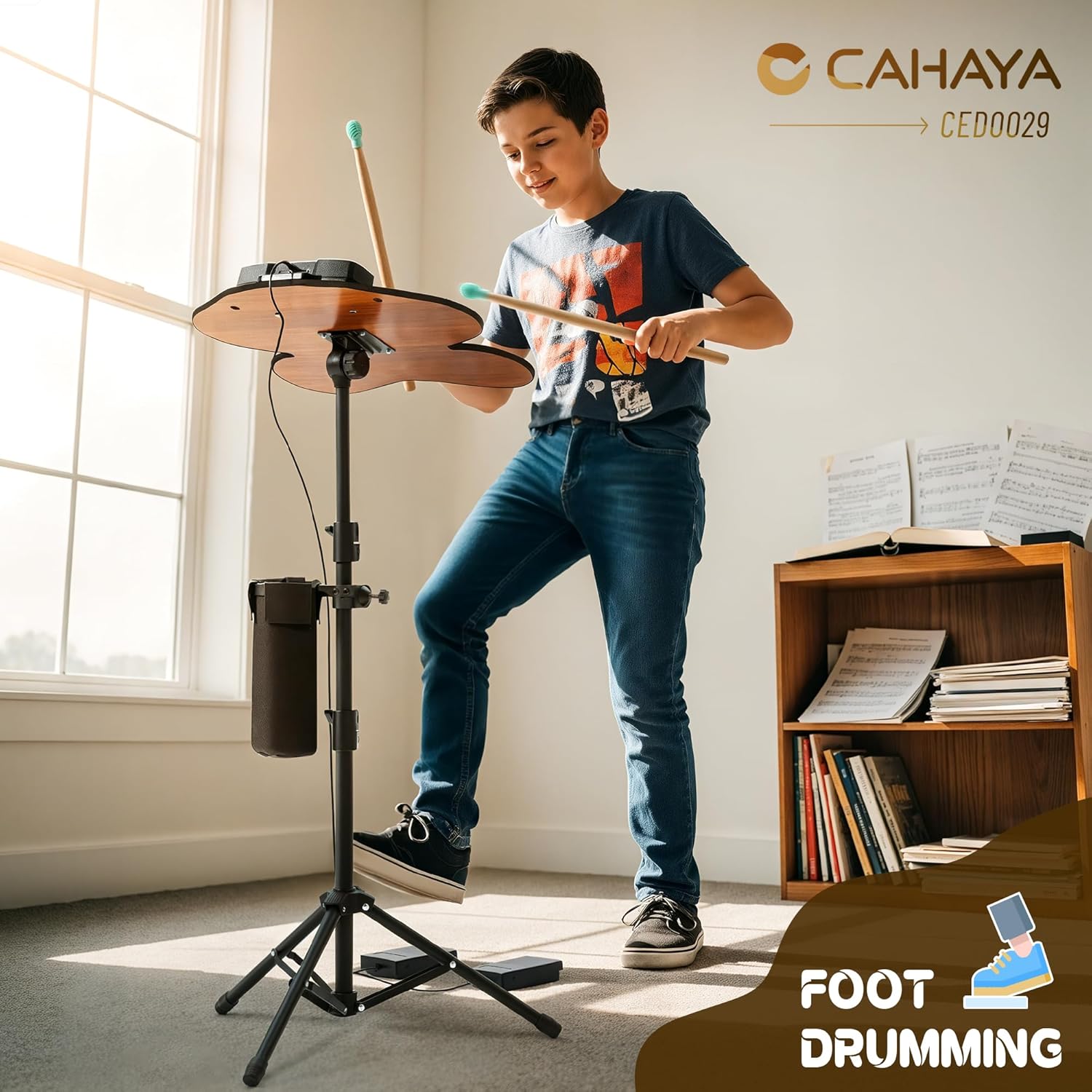 - Storage Design: The tripod stand includes a detachable side tray for easy access to small items like phones and headphones, plus a stick holder to keep drumsticks within reach and prevent misplacement. It lets kids focus on practicing while parents enjoy effortless organization.