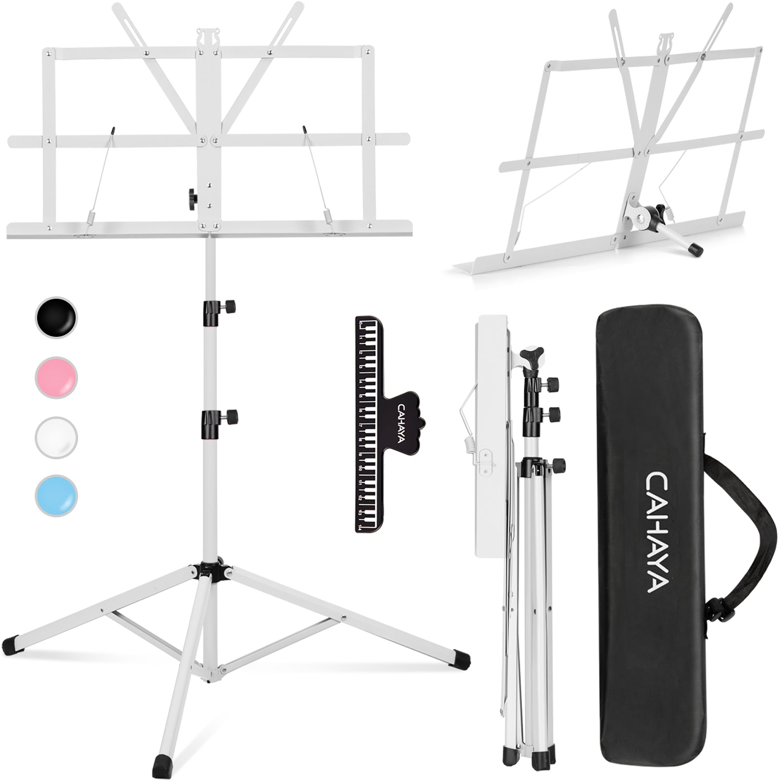 - Two Tier Vertical Shaft: tripod height adjustable from 27.6 inches to 54.3 inches through knobs, flexible tilting bookplate can be adjusted up to 180° to any proper and comfortable viewing angle as you need, CAHAYA sheet music stand is perfect for sitting or standing.