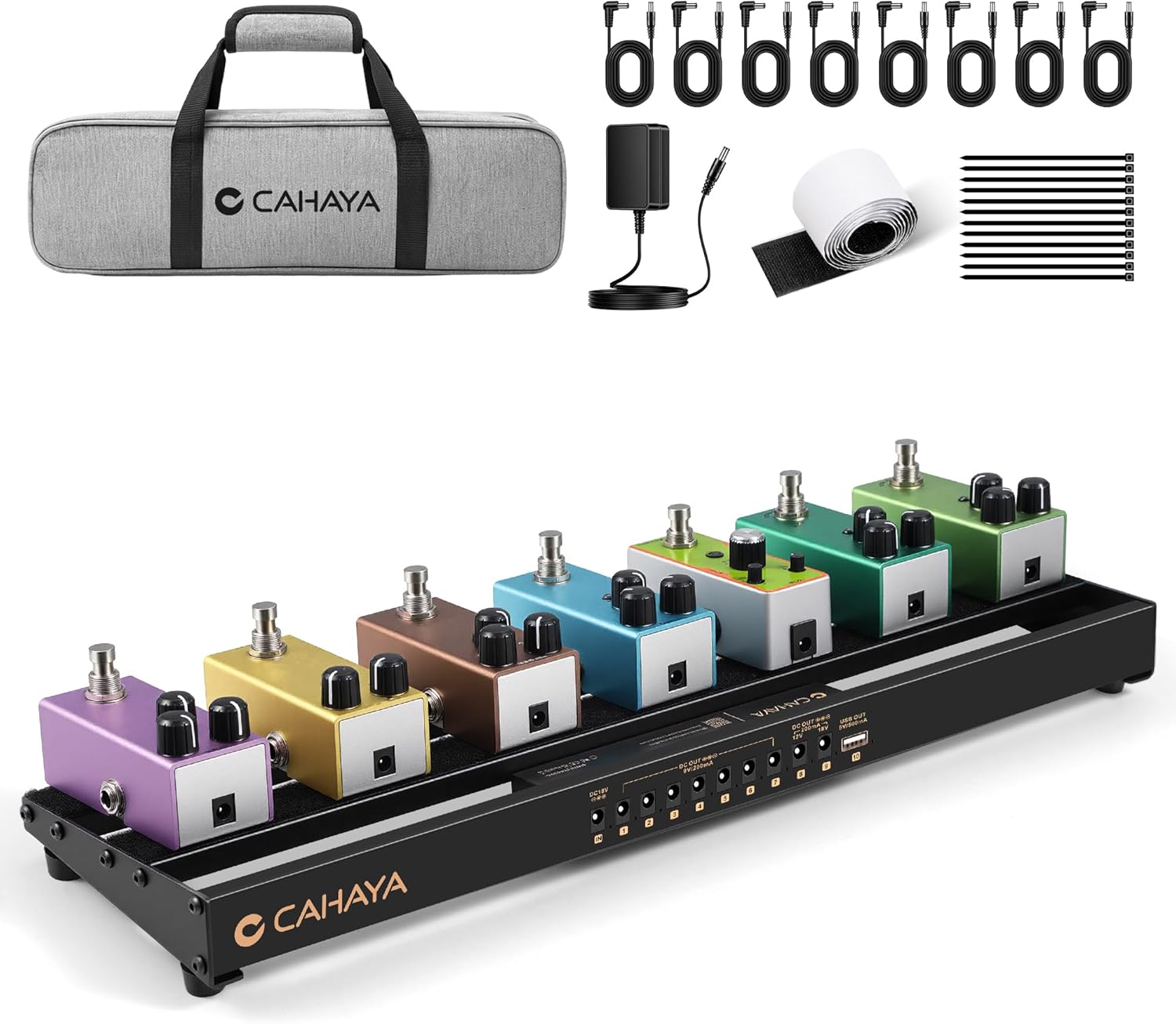 • Complete Accessories: Included in the box is a 21" x 6" premium carry bag (54 x 15 cm), a power adapter, eight durable cables, and tape. The spacious interior provides ample protection for your board and pedals, making it convenient to carry around during performances.